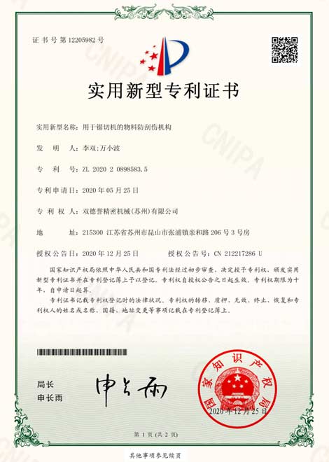 鋸切設備-氣動推進版操作系統-雙德譽榮譽資質